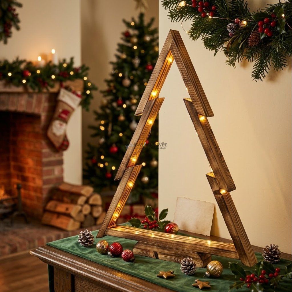 - Upozornění: Balení obsahuje 1 ks dřevěného stromečku. Dekorace a doplňky zobrazené na fotografiích jsou pouze ilustrační a nejsou součástí balení.