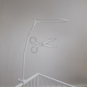 Kovová konstrukce na dětskou postýlku nebo kolébku, slouží jako držák na nebesa.