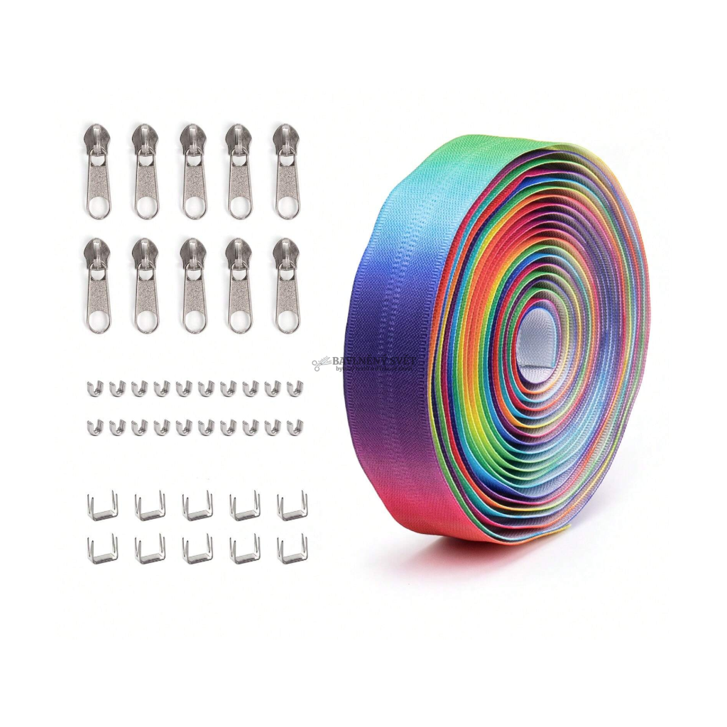 Tato sada je navržena pro všechny milovníky tvoření, kteří hledají profesionální a esteticky unikátní řešení pro své šicí projekty. Duhový efekt na hladké lícové straně plynule přechází v sytých a zářivých odstínech, které připomínají barvy rozpáleného léta a tropické dovolené, což dodá vašim výrobkům moderní a luxusní vzhled. Velkou výhodou „obráceného“ provedení je nejen jeho elegance, ale také praktičnost, protože skrytá spirála je lépe chráněna před nečistotami a nehrozí u ní zadrhávání jemných materiálů, jako je velur. Výrobek je ideální pro šití stylových doplňků, nákupních tašek, batohů, ale i designových kosmetických pouzder. Součástí balení jsou také kovové koncovky (zarážky), které slouží k bezpečnému zajištění zipu, aby z něj nevyjel jezdec. Jejich aplikace je velmi snadná a k pevnému zafixování vám postačí běžné kleště.