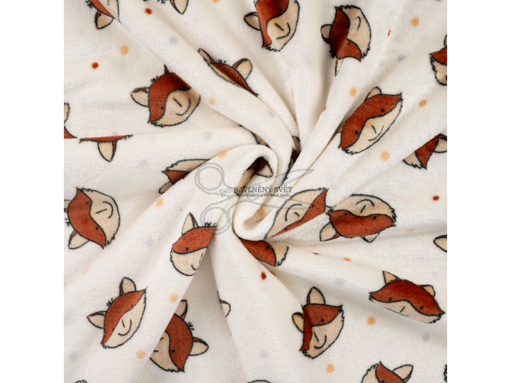Flanel fleece LIŠKA s PUNTÍKY šíře 145 cm