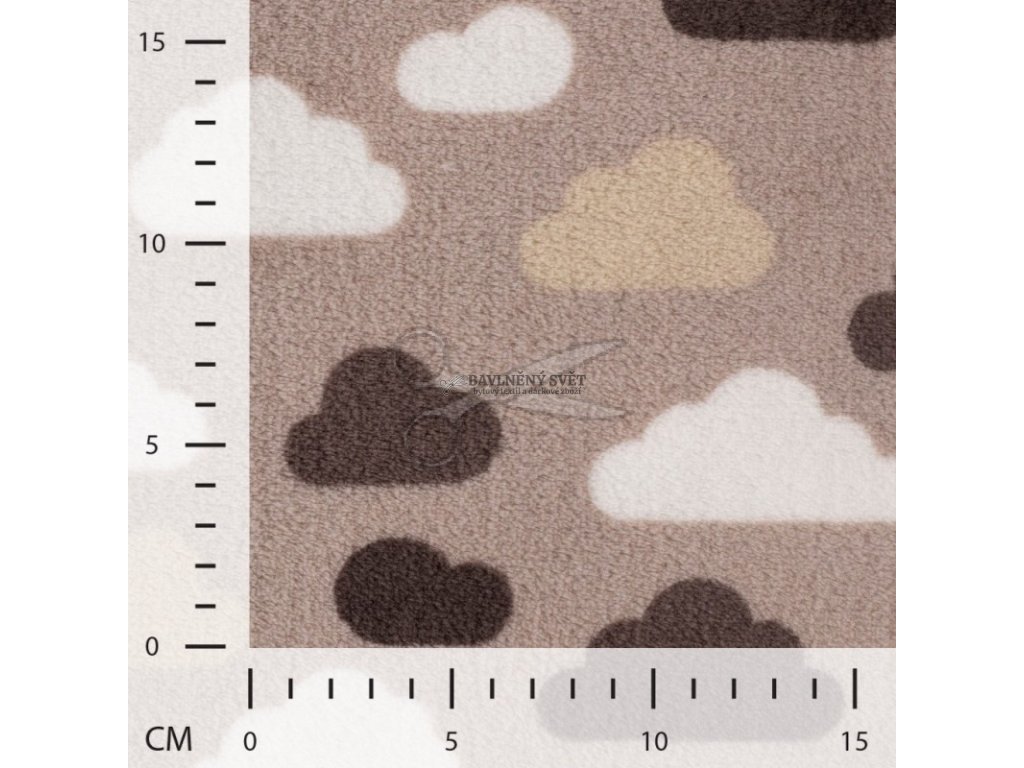 Náš Flanel fleece s motivem mraků a kapek je navržen pro všechny kreativní duše, které milují variabilitu a maximální hřejivost. Unikátnost tohoto materiálu spočívá v jeho plnohodnotném oboustranném provedení – zatímco jedna strana vás potěší nadýchanými mráčky, druhá nabízí moderní vzor dešťových kapek. Při práci je však nezbytné pečlivě hlídat směr střihu a texturu, protože jedna strana je hladší flanel a druhá nadýchanější fleece, což je klíčové zejména při šití pohodlných domácích teplákových souprav pro dospělé i děti.