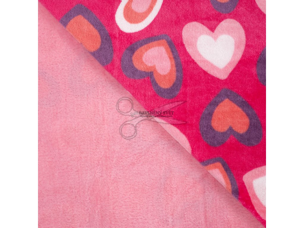 Flanel fleece SRDÍČKA růžová šíře 145 cm