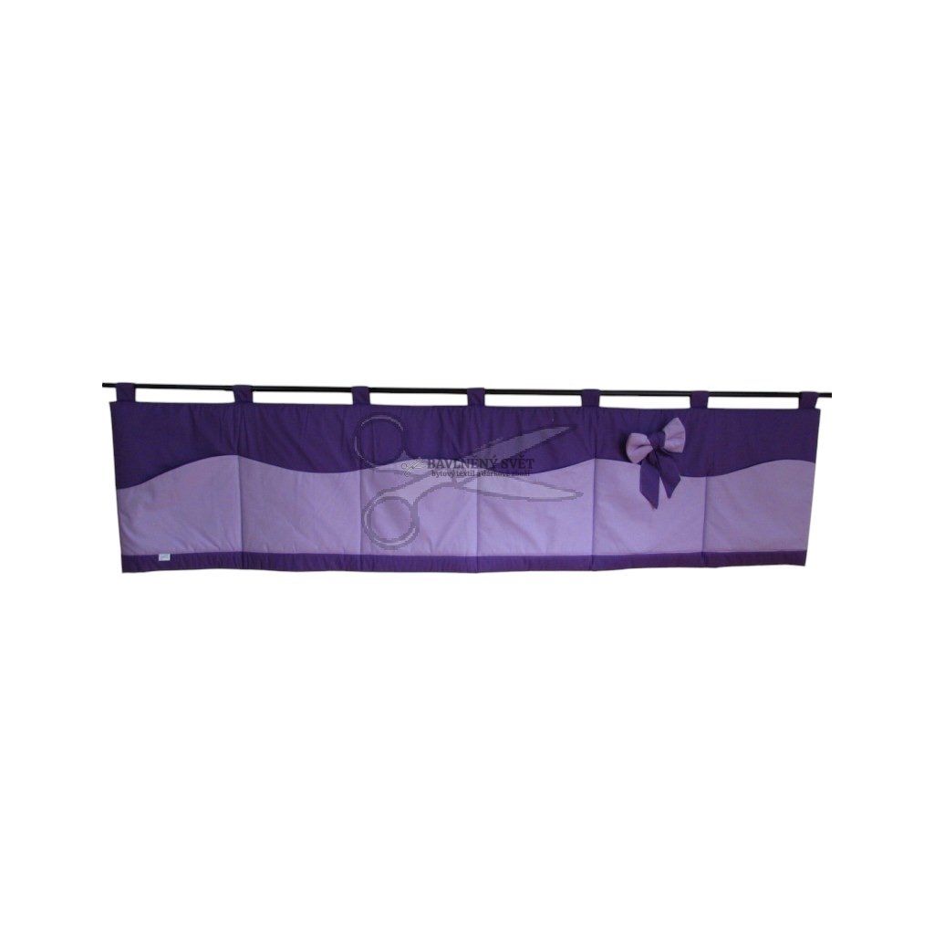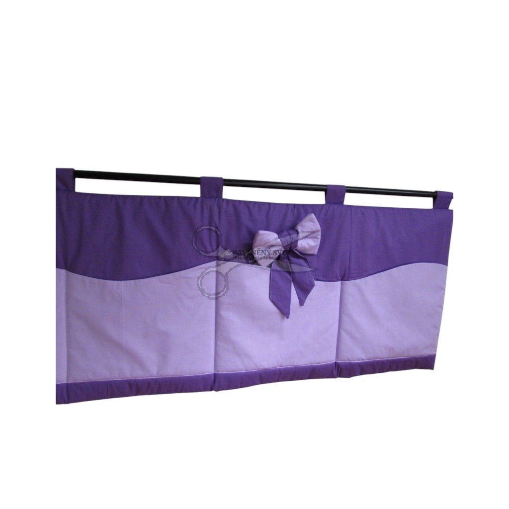 Každý detail v dětském pokoji tvoří atmosféru domova. Náš fialový kapsář za postel přináší nejen oblíbenou barvu všech holčiček, ale i prvek kreativity. Dominantou je velká mašle, která není pevně přišitá. Díky samolepicímu suchému zipu ji můžete připnout přesně tam, kam se vám právě hodí, nebo ji z kapsáře úplně sundat a ozdobit s ní třeba závěs či čelo postele.
