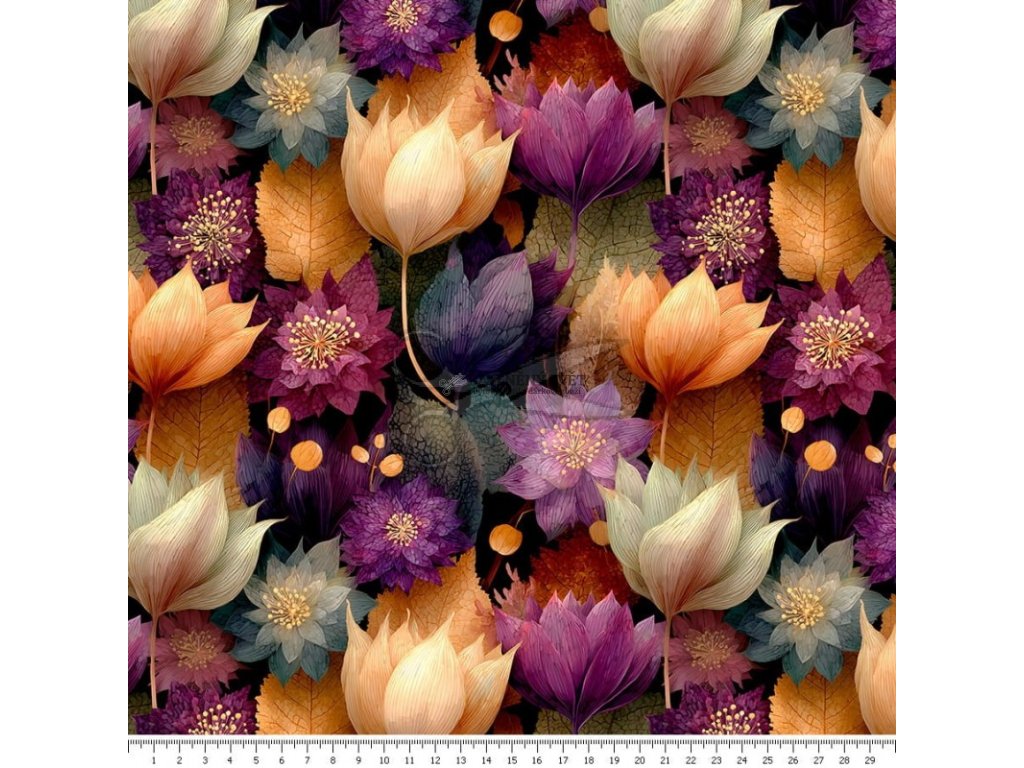 Hledáte něco víc než jen obyčejný vzor? Fialovo-oranžové květiny přinášejí do světa šití nádech tajemna a umělecké harmonie. Tento motiv je jako stvořený pro projekty, které mají působit luxusně a útulně zároveň. Protože je látka zcela nepromokavá, je skvělým parťákem pro všechna roční období.