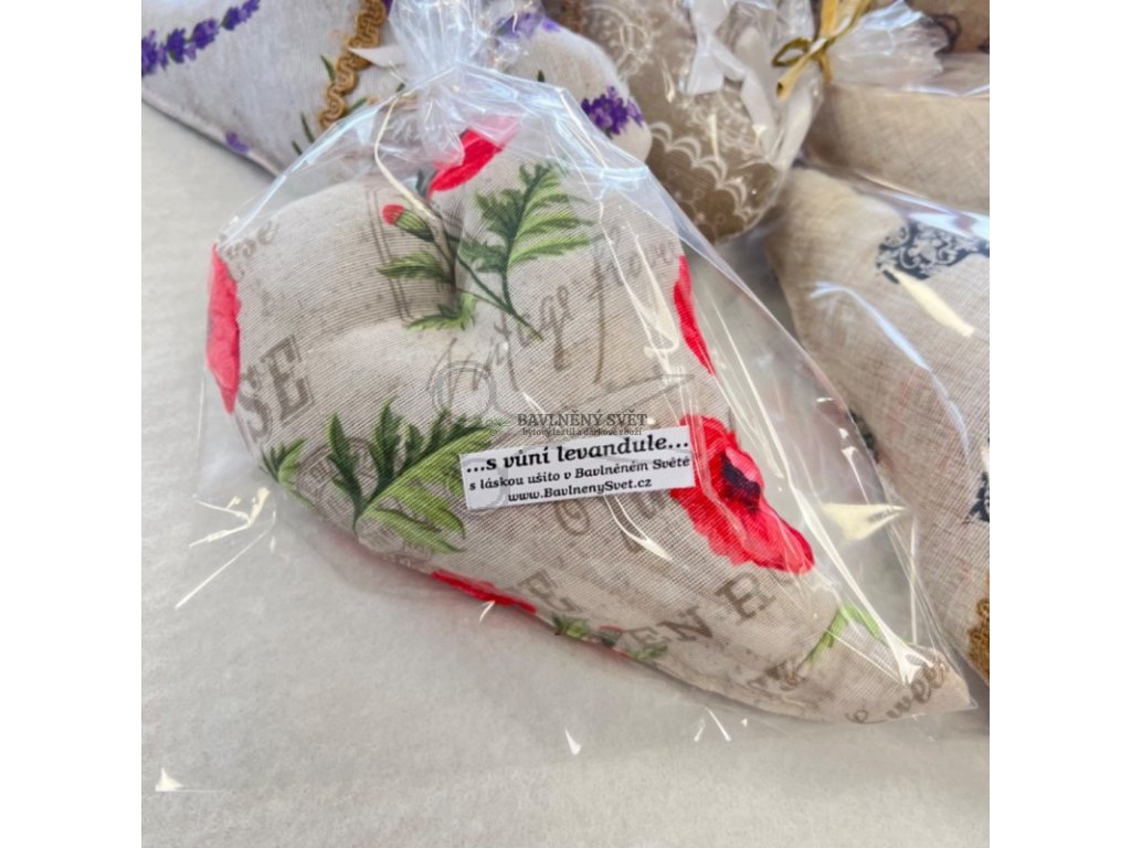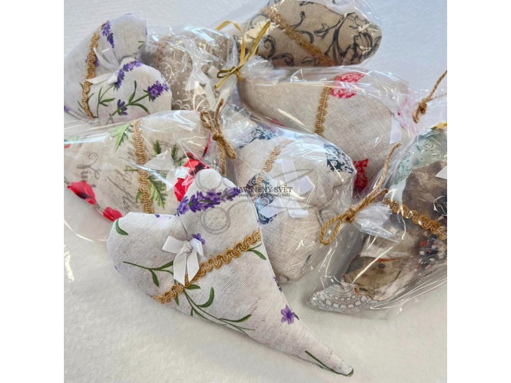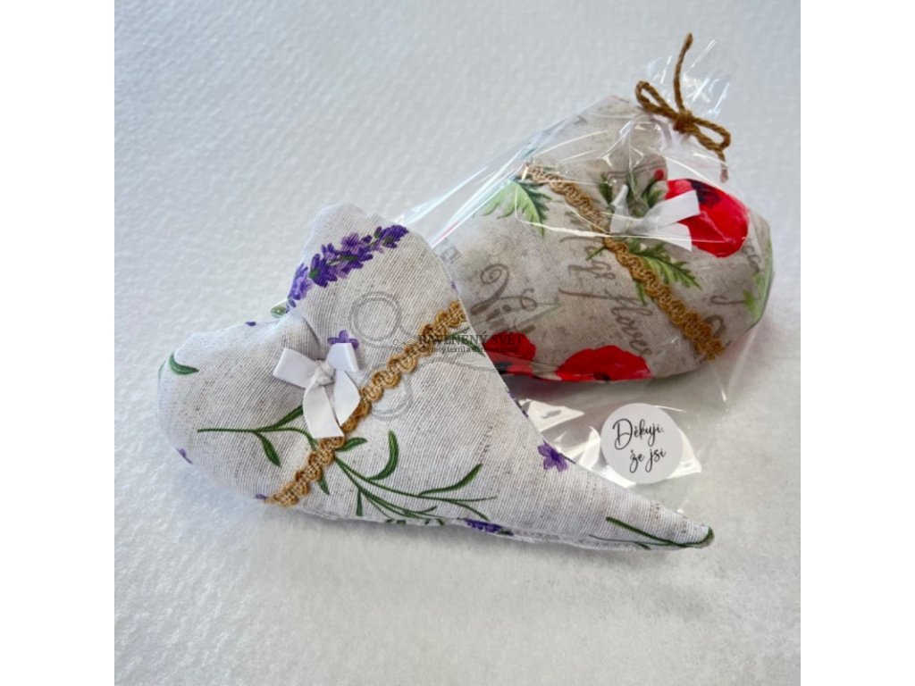 Upozornění – MIX vzorů: Srdíčka zasíláme jako náhodný výběr (mix vzorů a barev) podle aktuální dostupnosti zbytků látek na dílně. Není možné si zvolit konkrétní vzor, barvu nebo motiv (např. levanduli, květy či geometrii). Každé srdíčko je jedinečné překvapení!