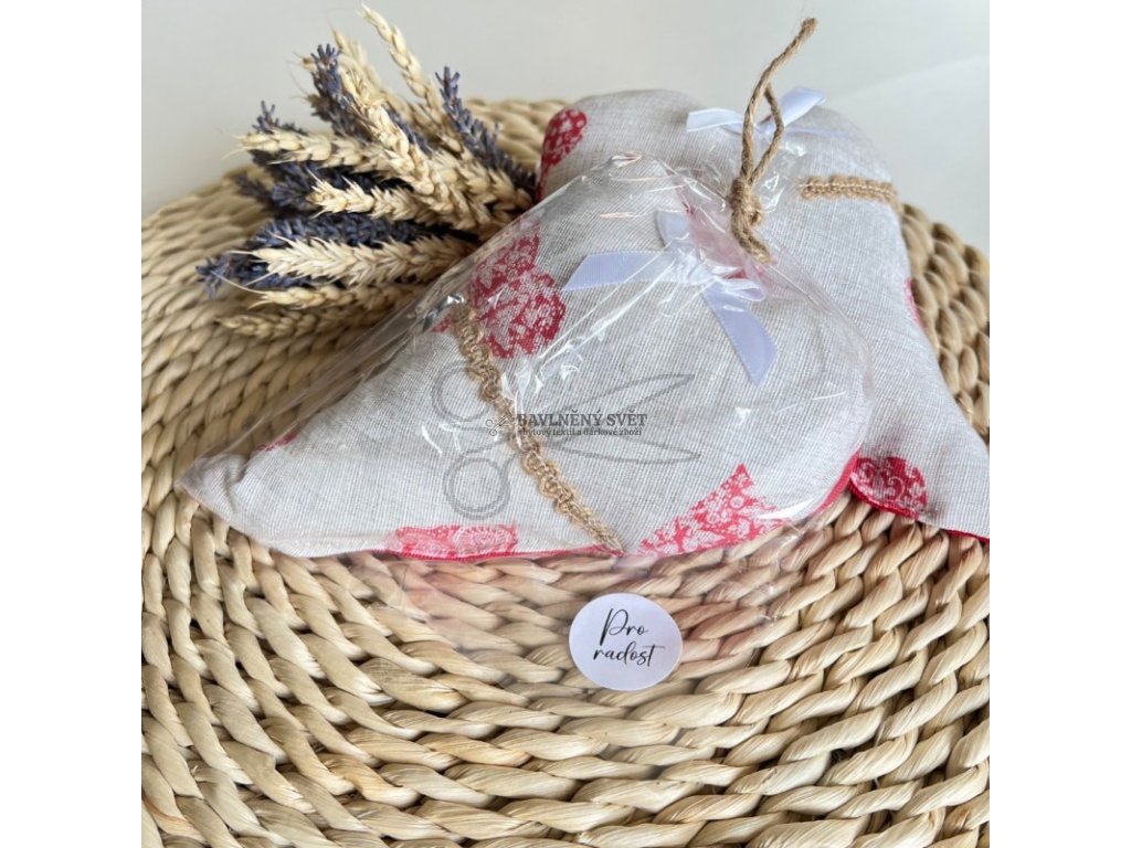- Relaxace z přírody: Srdíčko je naplněno pravou sušenou BIO levandulí (cca 6 g), která má uklidňující účinky a pomáhá při relaxaci.