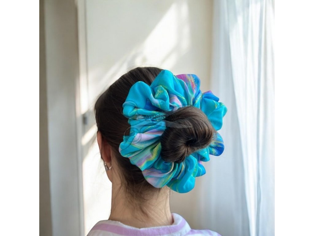MAXI Scrunchie gumička do vlasů DUHOVÁ TYRKYS