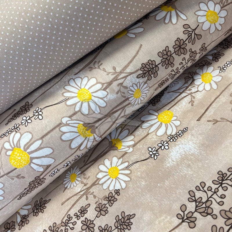 metráž - plátno PUNTÍČEK bílý na KÁVOVÉM š.240cm
