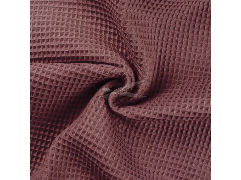 Hlavní předností této vafloviny je její schopnost pracovat s texturou – po prvním vysrážení se čtverečky krásně vykreslí, látka se stane objemnější, měkčí a na dotek velmi poddajnou. Tento proces dodává hotovým kouskům profesionální vzhled a vy se tak zcela vyhnete nutnosti žehlení, protože právě mírně zvlněná struktura je u tohoto materiálu nejvíce žádaná. Látka je vysoce komfortní a díky své odolnosti se skvěle hodí na šití savých ručníků, relaxačních županů, dětských osušek nebo stylových přehozů a polštářů, které rozzáří každý interiér. Sytý, ale přitom jemný odstín mauve působí velmi nadčasovým dojmem a snadno se kombinuje s dalšími přírodními materiály.