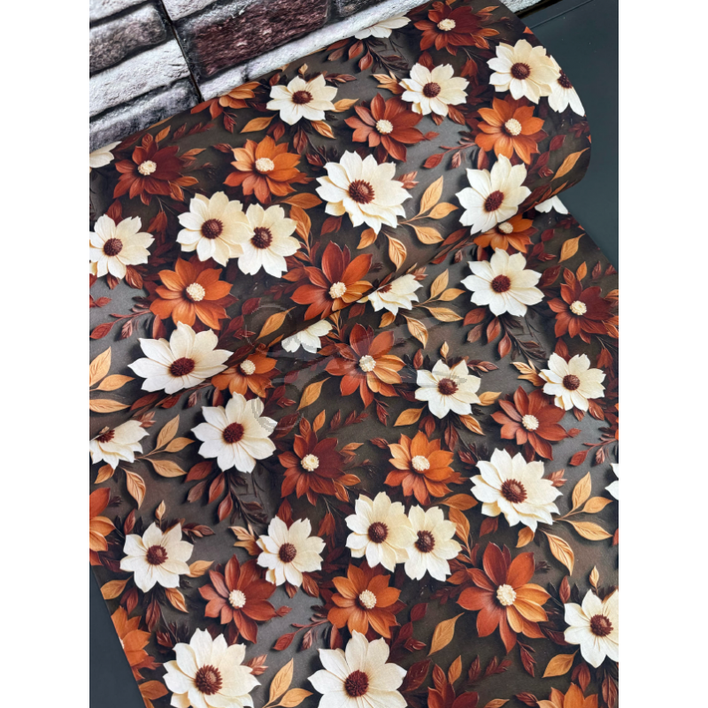 Tagy: metráž - plátno 5D KVĚTY hnědé š.240cm