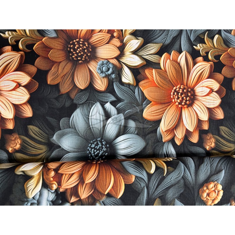 metráž - plátno 5D KVĚTY oranžovo šedé š.240cm 2,JAKOST