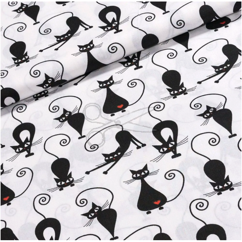 metráž - plátno KOČIČKA se SRDÍČKEM š.160cm