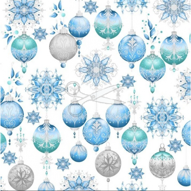 metráž - plátno VÁNOČNÍ - KOULE modré š.160cm