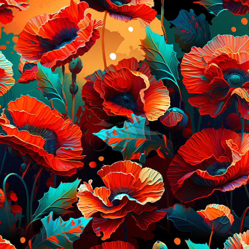 Kočárkovina se vzorem krásný rozkvetlých máků.