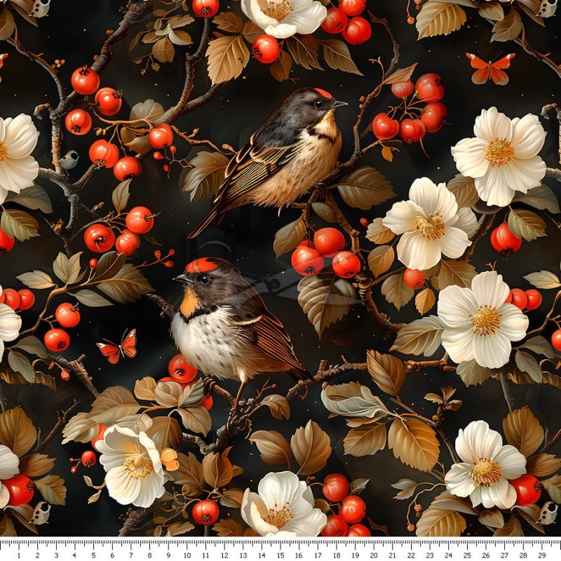 metráž - KOČÁRKOVINA - PTÁČEK s květem v JABLONI
