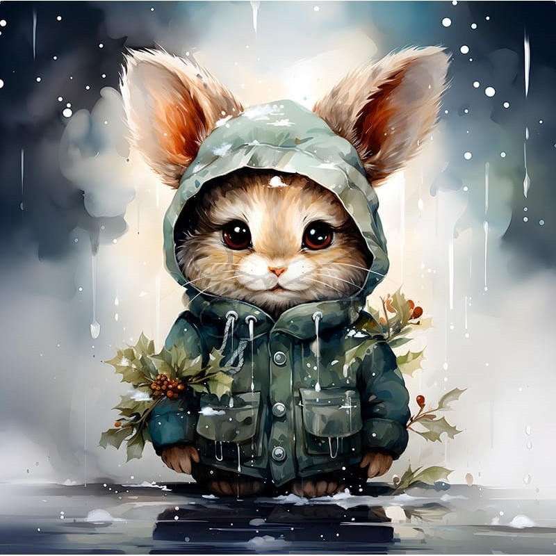 Velurový dekorativní panel s králíček s vánoční větvičkou