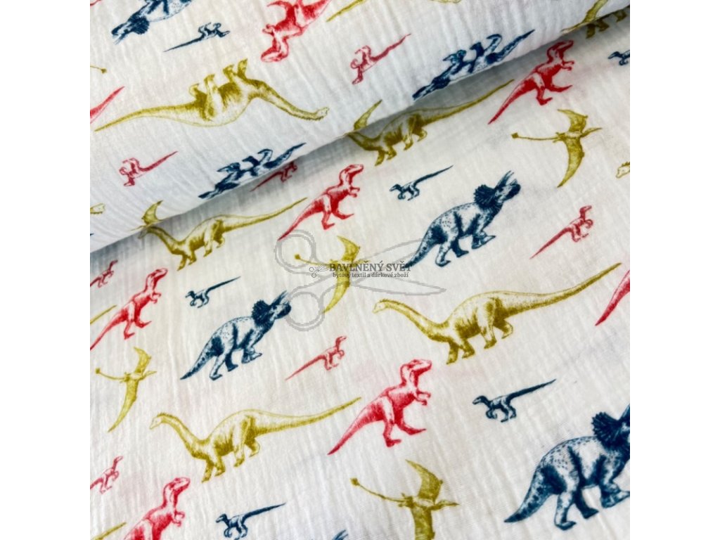 Mušelín dvojitá gázovina DINOSAUŘI šíře 135 cm