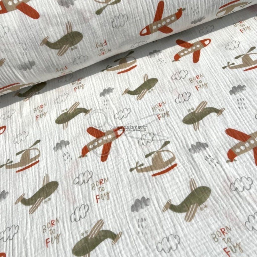 Mušelín dvojitá gázovina LETADLA šíře 140 cm