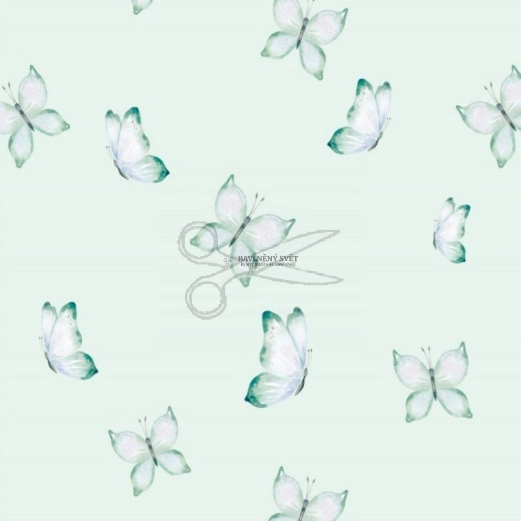 Mušelín dvojitá gázovina MOTÝLCI mentoloví šíře 135 cm