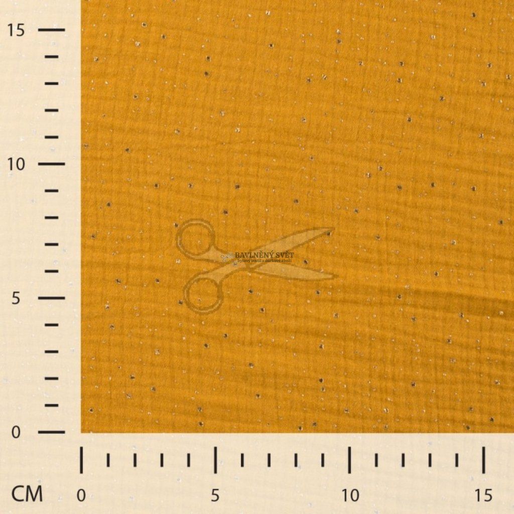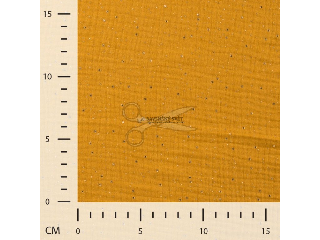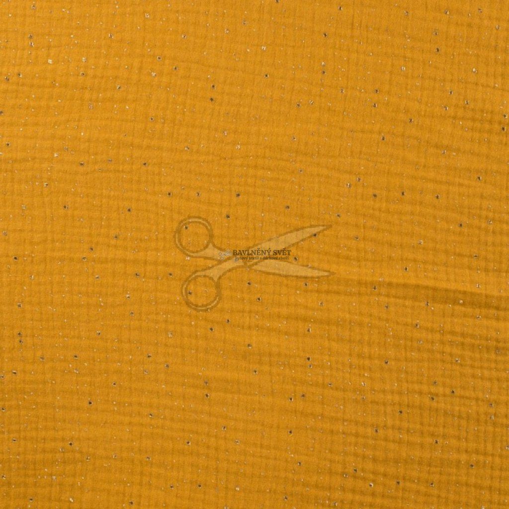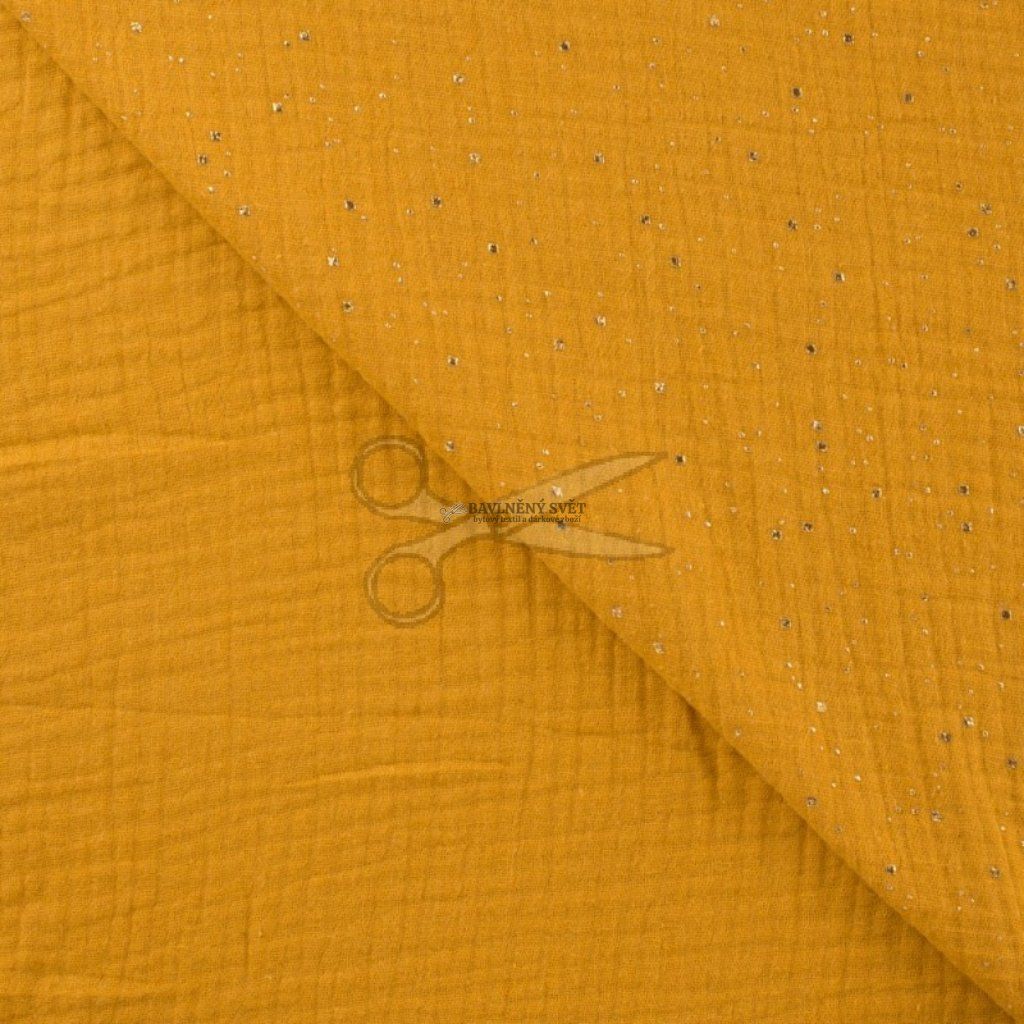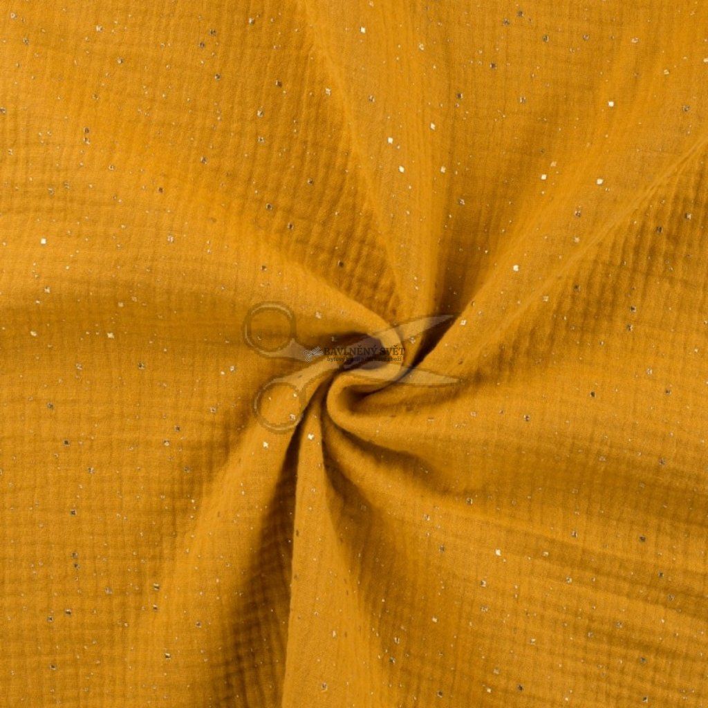 Mušelín dvojitá gázovina OKROVÁ se zlatými kamínky šíře 130 cm