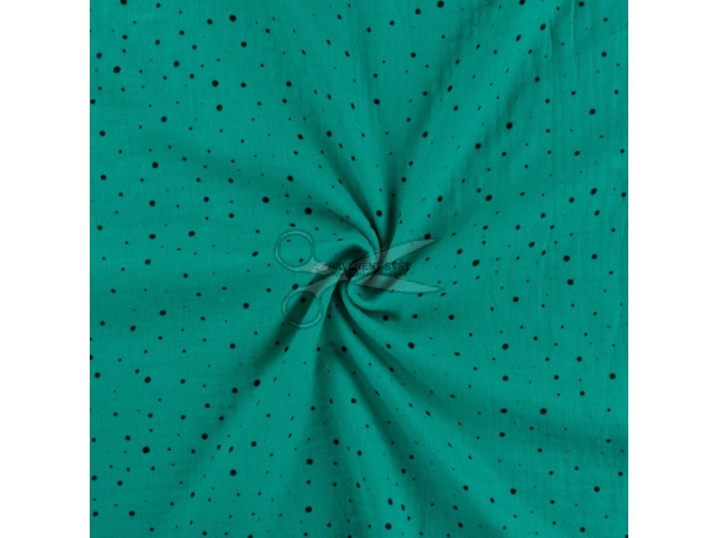 Mušelín dvojitá gázovina třpytivá s PUNTÍKY mentolová TMAVÁ šíře 135 cm