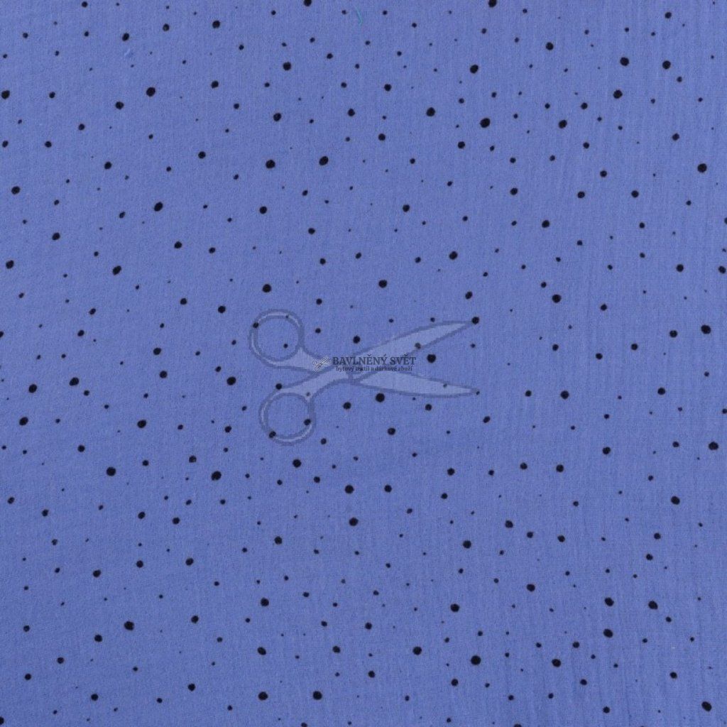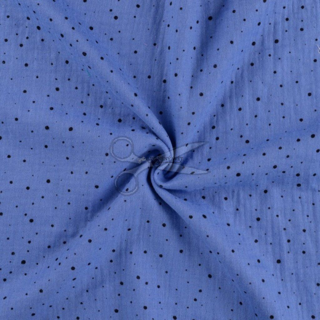 Mušelín dvojitá gázovina třpytivá s PUNTÍKY modrá šíře 135 cm