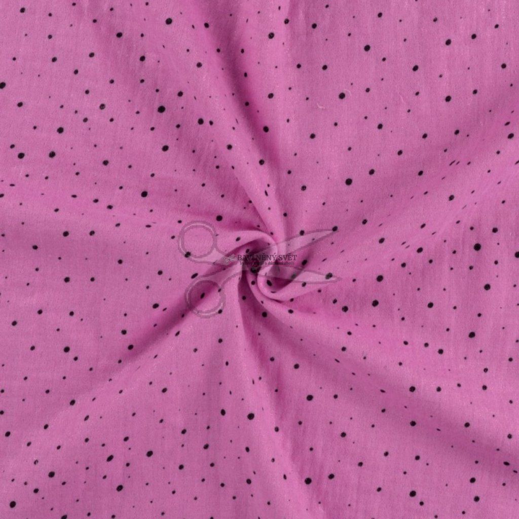 Mušelín dvojitá gázovina třpytivá s PUNTÍKY růžová JAHODOVÁ šíře 135 cm