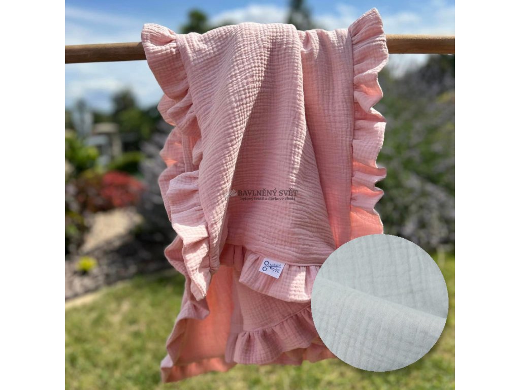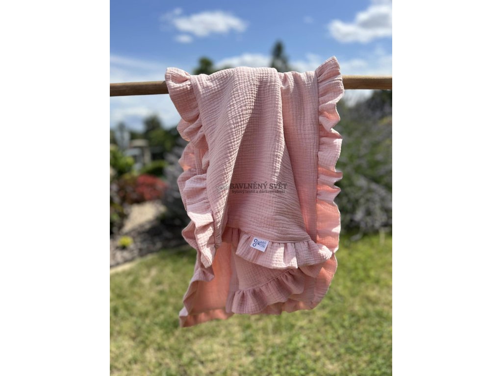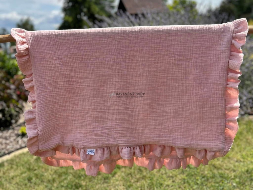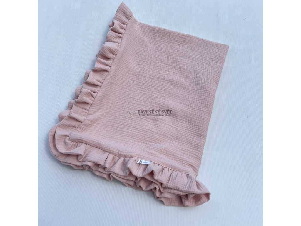 Mušelínová jednobarevná deka s volánem 100 x 75 cm