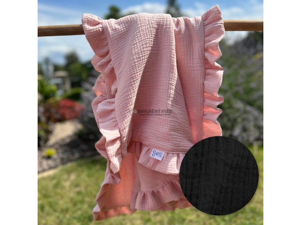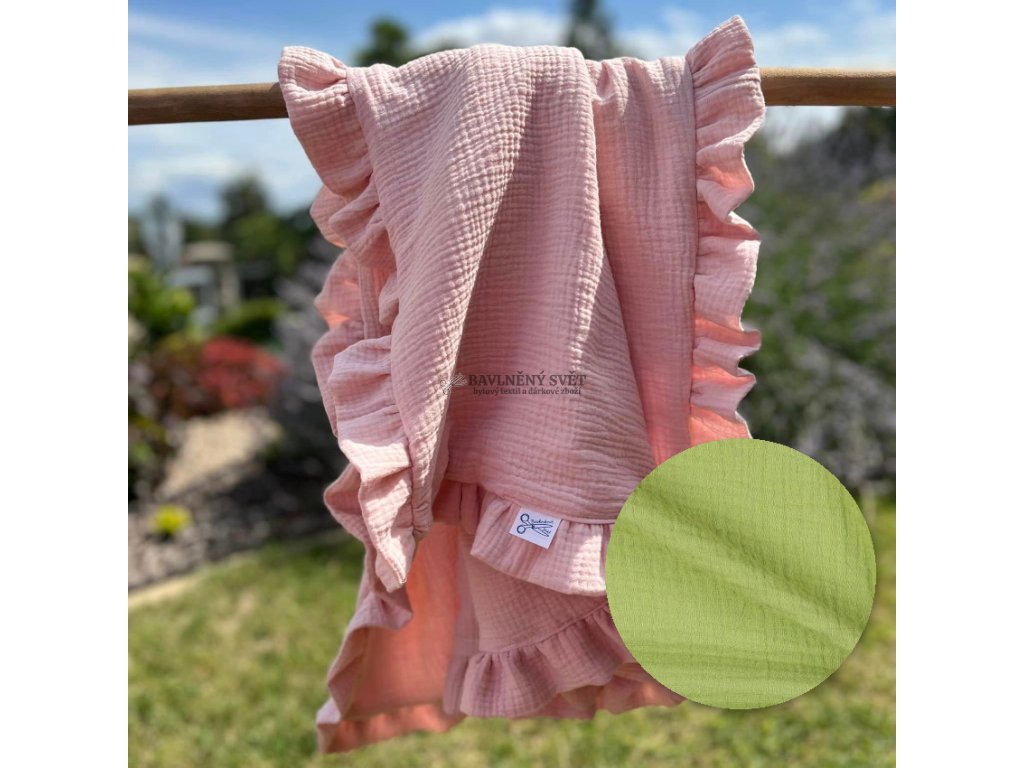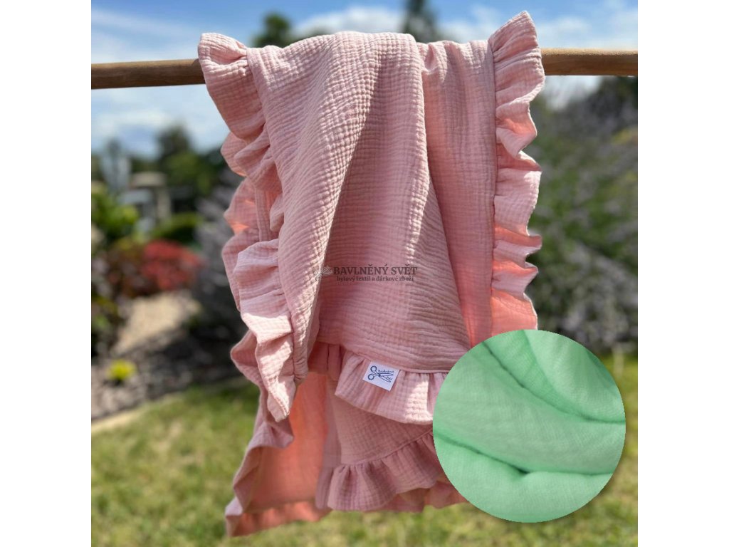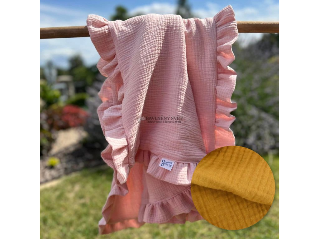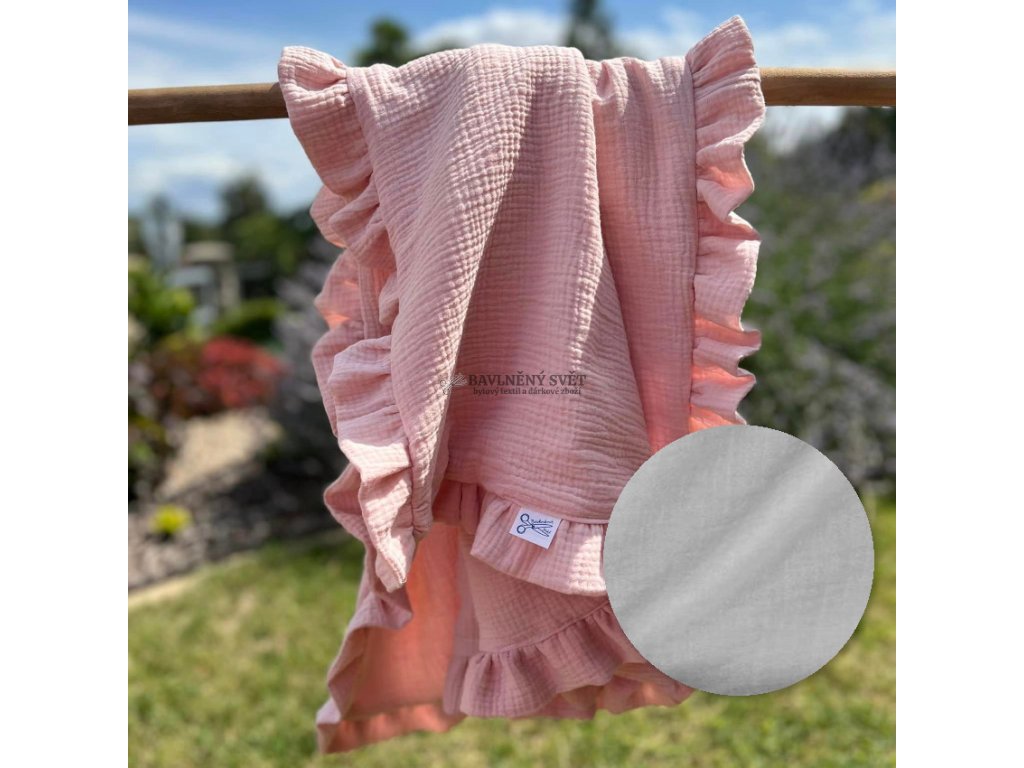 Mušelínová jednobarevná deka s volánem 100 x 75 cm