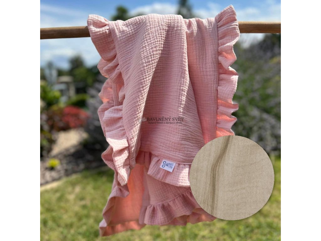 Dopřejte svému miminku komfort v materiálu, který je považován za jeden z nejjemnějších na světě. Mušelín je čistá 100% bavlna, která díky své specifické vazbě vláken skvěle reguluje teplotu a předchází přehřátí dítěte. V naší dílně Bavlněný svět šijeme tyto dečky s důrazem na detail a kvalitu, což potvrzuje i ozdobný volán, který dodává dece elegantní a něžný vzhled.