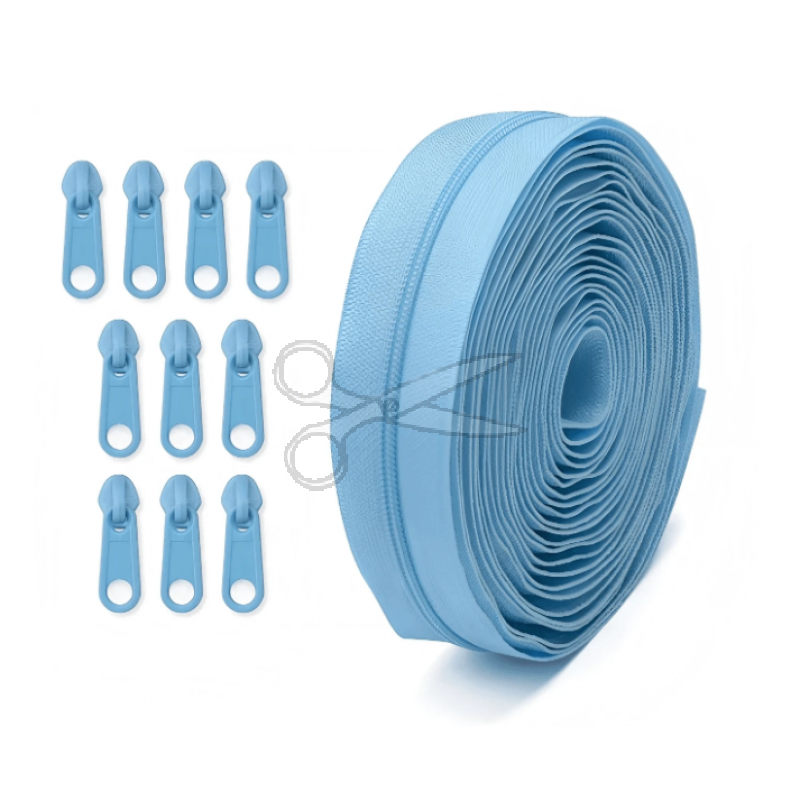 Balení obsahuje: 4,5 metru zipového pásu + 10 ks sladěných plastových jezdců.