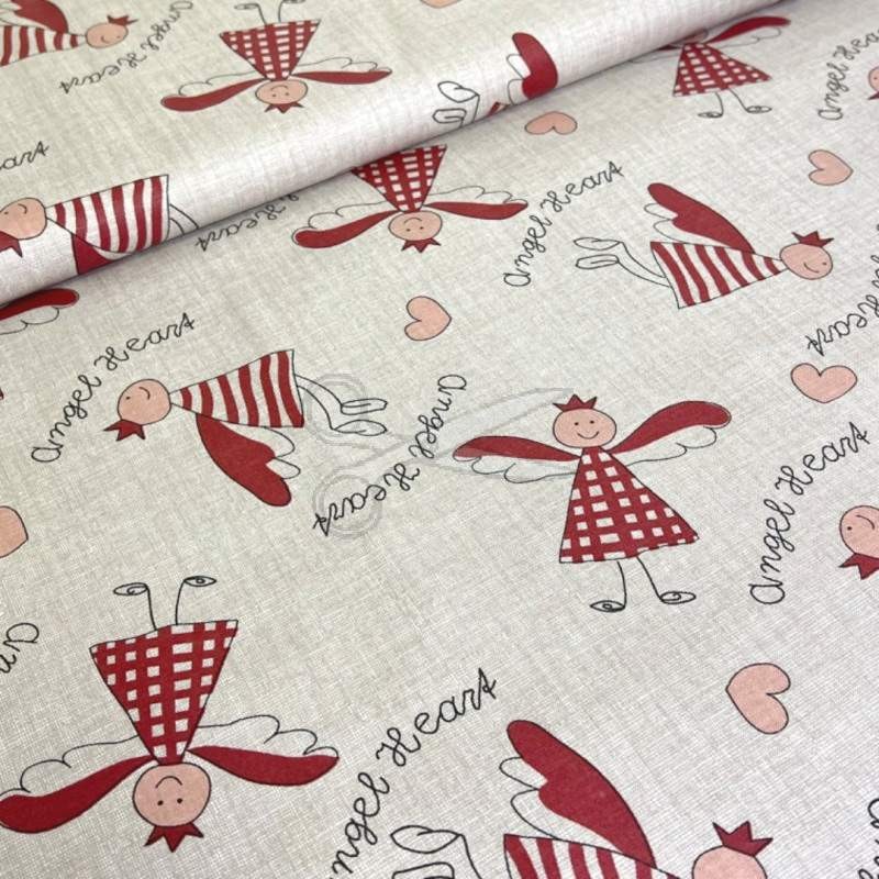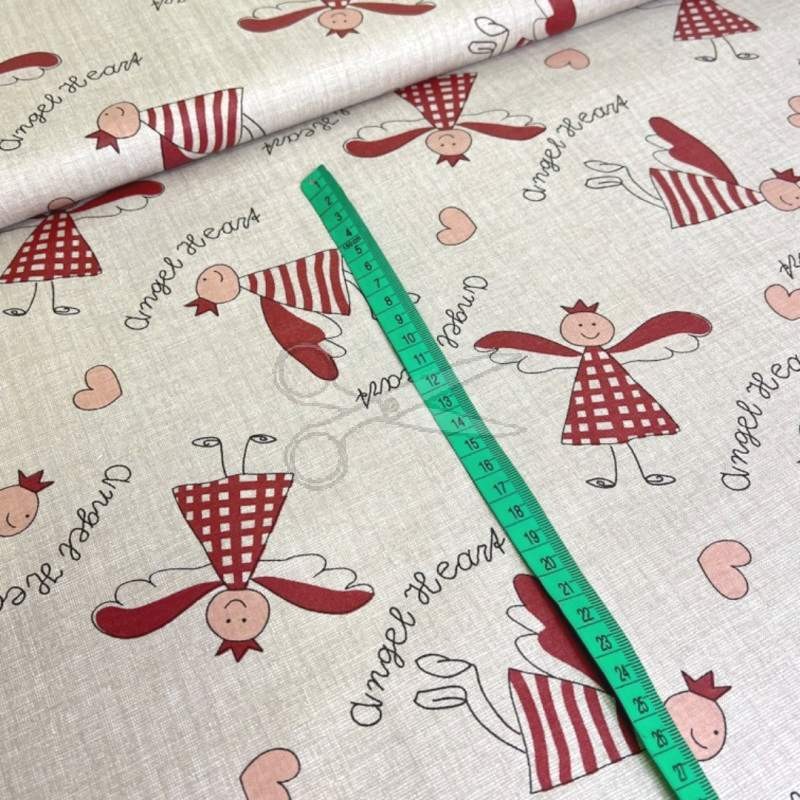 metráž - plátno VÁNOČNÍ - ANDĚL béžový na BÉŽOVÉM š.150cm