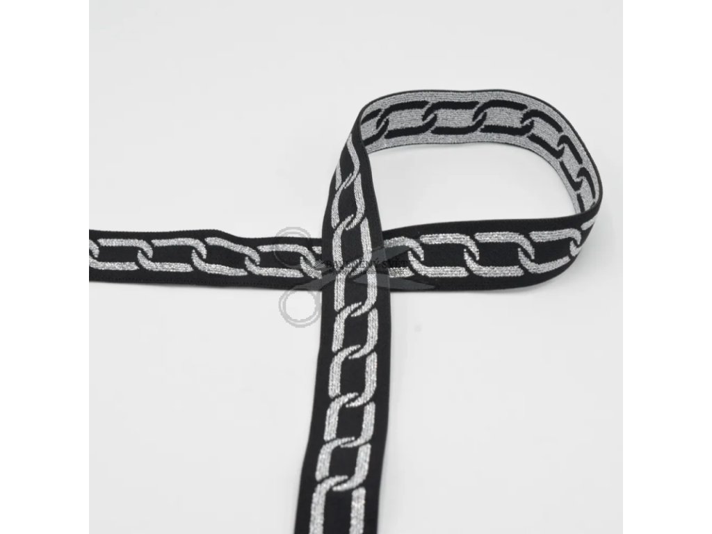 Toužíte po originálním detailu, který odliší vaše výrobky od běžné konfekce? Správně zvolená textilní galanterie definuje nejen vzhled, ale i pocit z nošení. Tato 25mm ozdobná pruženka byla vyvinuta s důrazem na jemnost při kontaktu s kůží a maximální odolnost proti vytahání. V našem sortimentu prádlových gum a pruženek vyniká tento vzor svou schopností oživit i jednoduché střihy. Pokud tvoříte autorskou módu, stříbrno-černá guma dodá vašim modelům estetiku "high-end" produktů. Použité pigmenty jsou stálobarevné, takže stříbrný odlesk zůstává intenzivní i po mnoha cyklech v pračce.