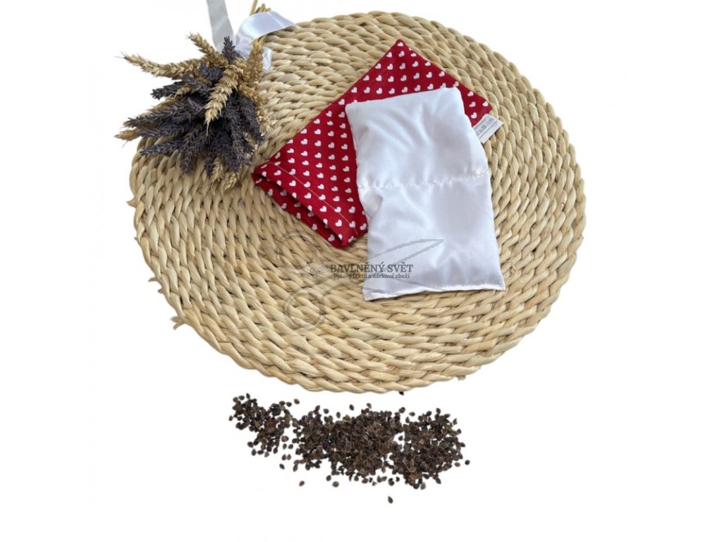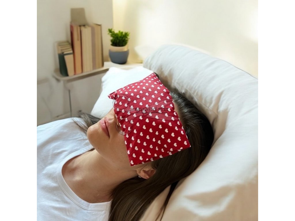 - Přírodní náplň z BIO pohanky: Jemné pohankové slupky zajišťují příjemný tlak, který pomáhá uvolnit svaly kolem očí.