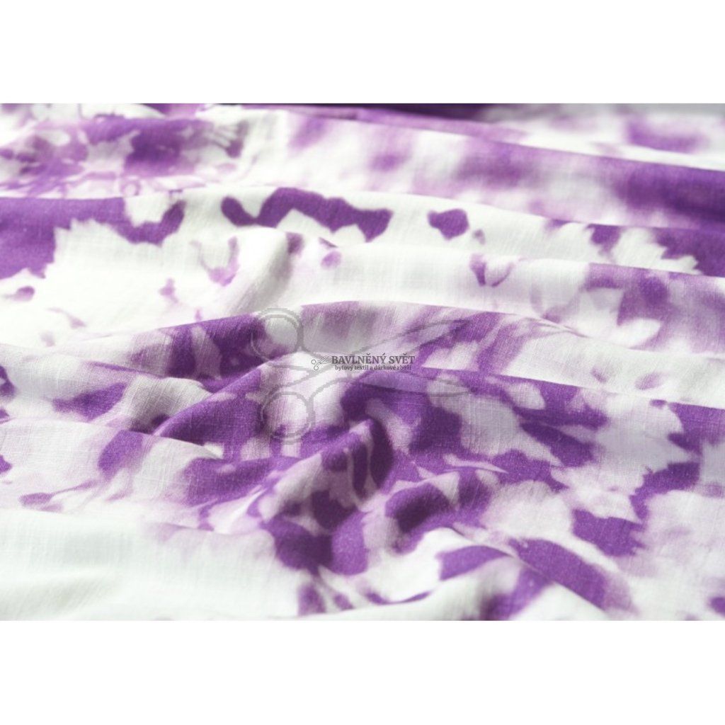 Slub mušelín fialová batika zaujme originálním batikovým vzorem v sytých fialových tónech, který v kombinaci s jemně strukturovaným povrchem vytváří výrazný a přirozený vzhled. Díky tzv. slub efektu, tedy lehce nepravidelné přízi, má látka živější strukturu a působí přirozeně a lehce rustikálně. Tento typ mušelínu je stále velmi lehký, vzdušný a prodyšný, ideální na letní nošení. Stejně jako ostatní mušelíny je tvořen dvěma jemně spojenými vrstvami bavlny, díky čemuž je měkký a příjemný na dotek. S každým praním látka měkne a získává ještě přirozenější, mírně krepový vzhled, který nevyžaduje žehlení.