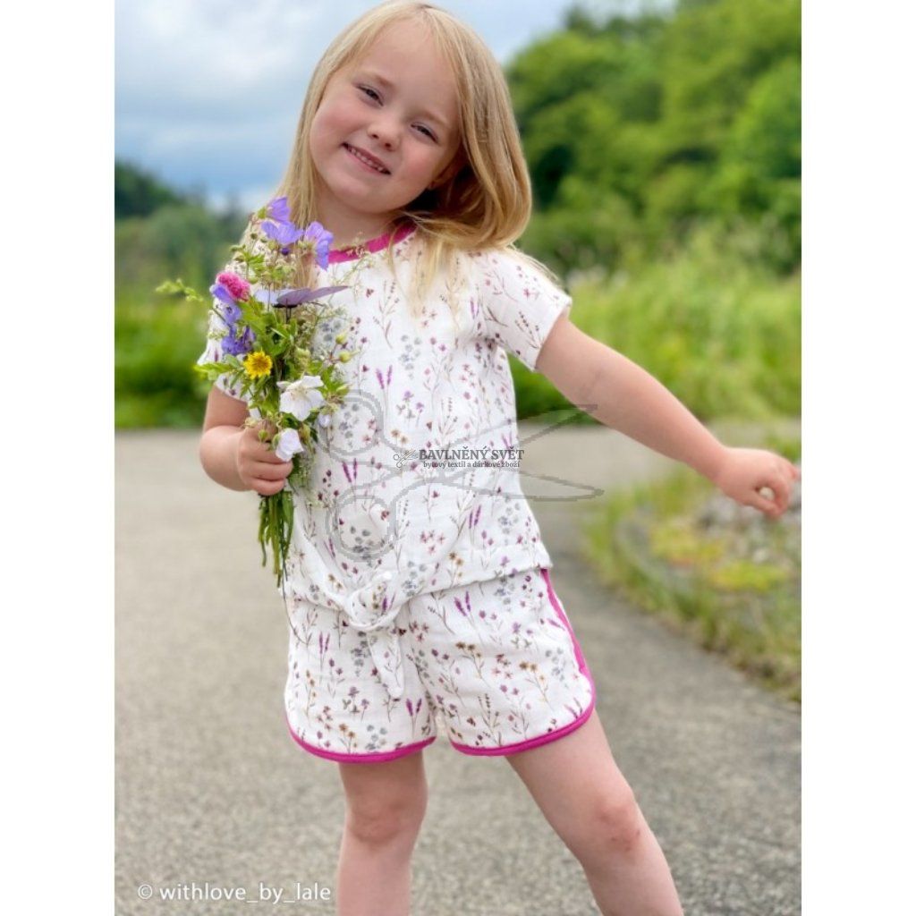 Jemná květovaná látka s drobnými kvítky v odstínech fialové a fuchsiové. Lehký, vzdušný mušelín ideální na šití dětských šatiček, čepiček, šátků i dalších letních kousků. Vzor je decentní, nepůsobí rušivě a krásně vynikne na dětském oblečení i doplňcích. Lehký mušelín je velmi vzdušný, prodyšný a příjemný na dotek, což z něj činí ideální materiál pro letní dětské oblečení. Látka krásně splývá, je měkká a pohodlná i pro celodenní nošení. Díky své přirozené struktuře a jemnosti je vhodná i pro citlivou dětskou pokožku.