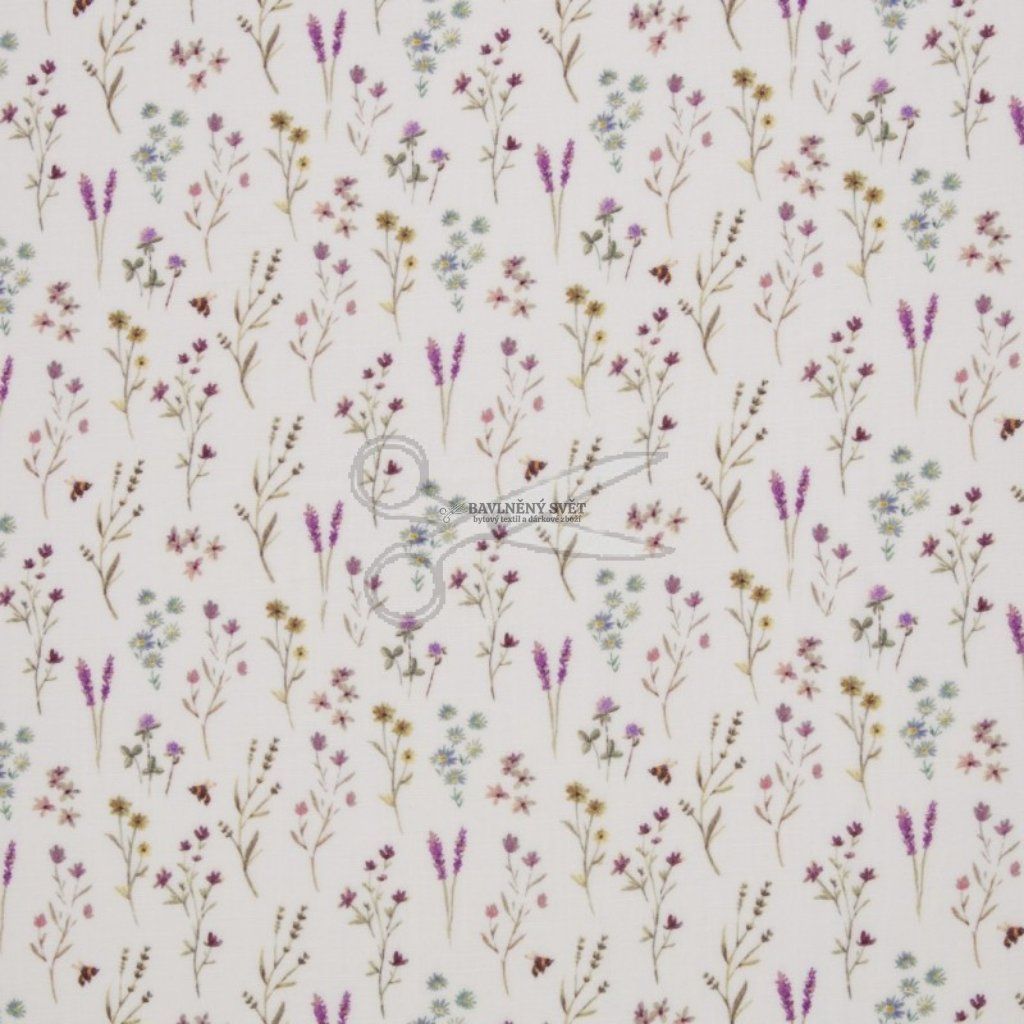 Slub mušelín DIVOKÁ LOUKA na BÍLÉM šíře 144 cm