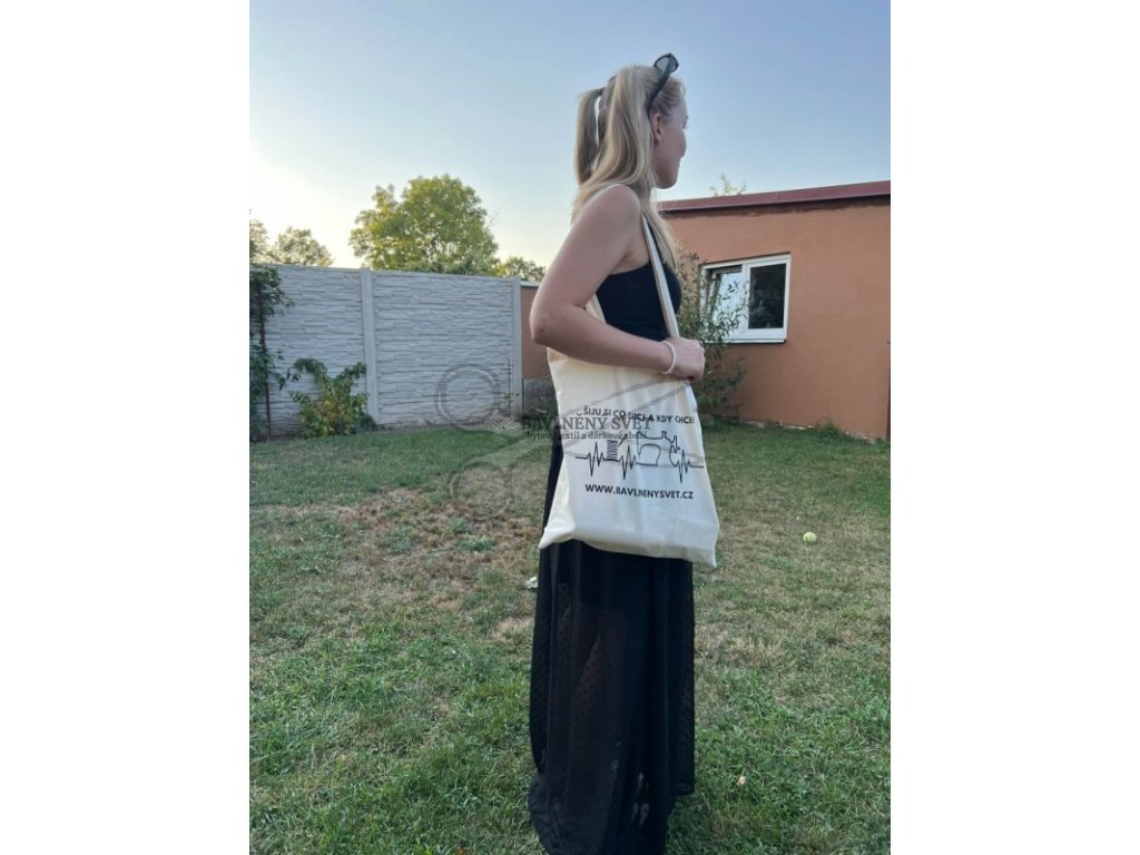 Tato taška ze 100% bavlny je dostatečně pevná, aby unesla všechna vaše nová klubíčka i metry látek. Díky kvalitnímu černému potisku s motivem šicího stroje a srdečního tepu je to perfektní dárek pro vás i vaše kamarádky z kurzů šití. Je skladná, praktická a díky prodlouženým popruhům ji můžete hodit přes rameno a vyrazit vstříc novým kreativním výzvám.
