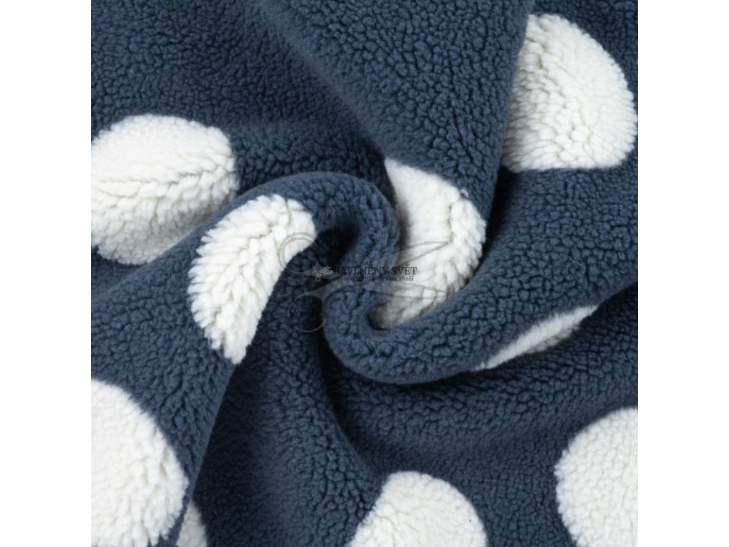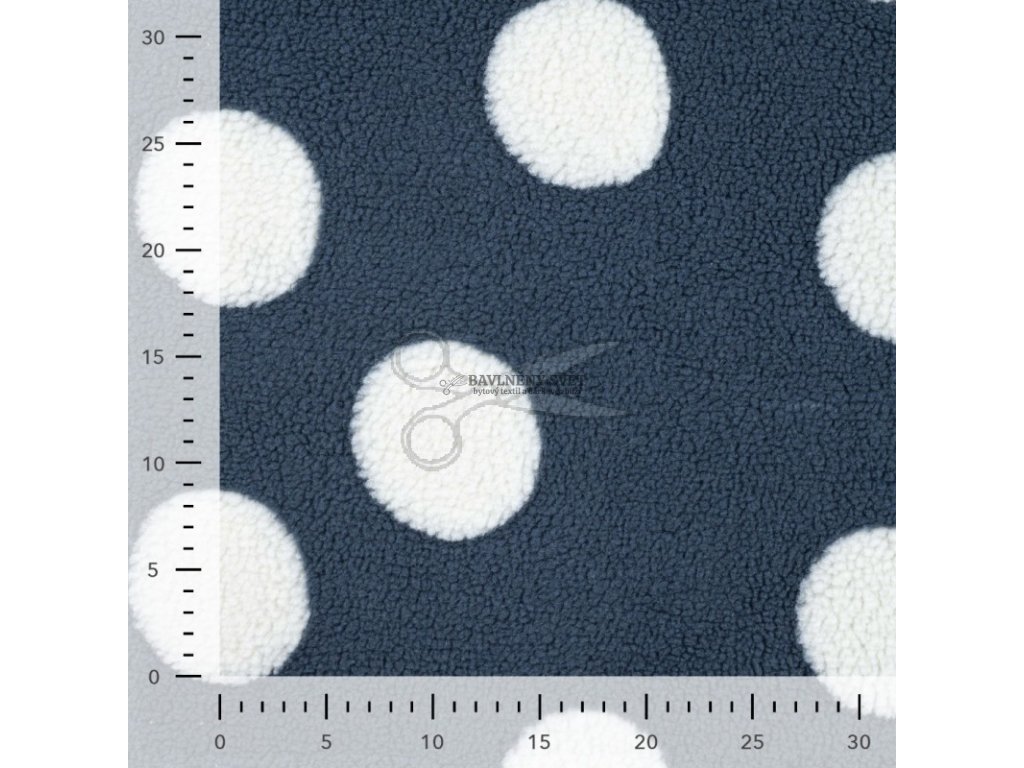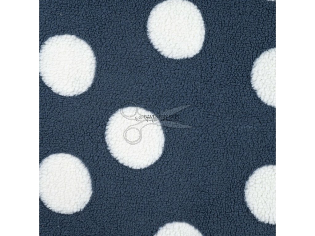 Teddy látka PUNTÍKY na MODRÉM jeans šíře 150 cm