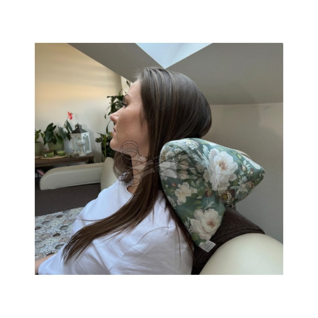 Hledáte funkční doplněk, který uleví vaší šíji a zároveň skvěle vypadá? Naše relaxační kost s půvabným motivem rozkvetlých bílých růží na jemném, tlumeně zeleném podkladu je navržena pro váš maximální komfort a vnese do vašeho interiéru nádech elegance a útulnosti. Poctivá česká ruční práce promění každé sledování oblíbeného pořadu nebo čtení knihy v příjemný zážitek bez nepříjemného napětí v krční páteři.