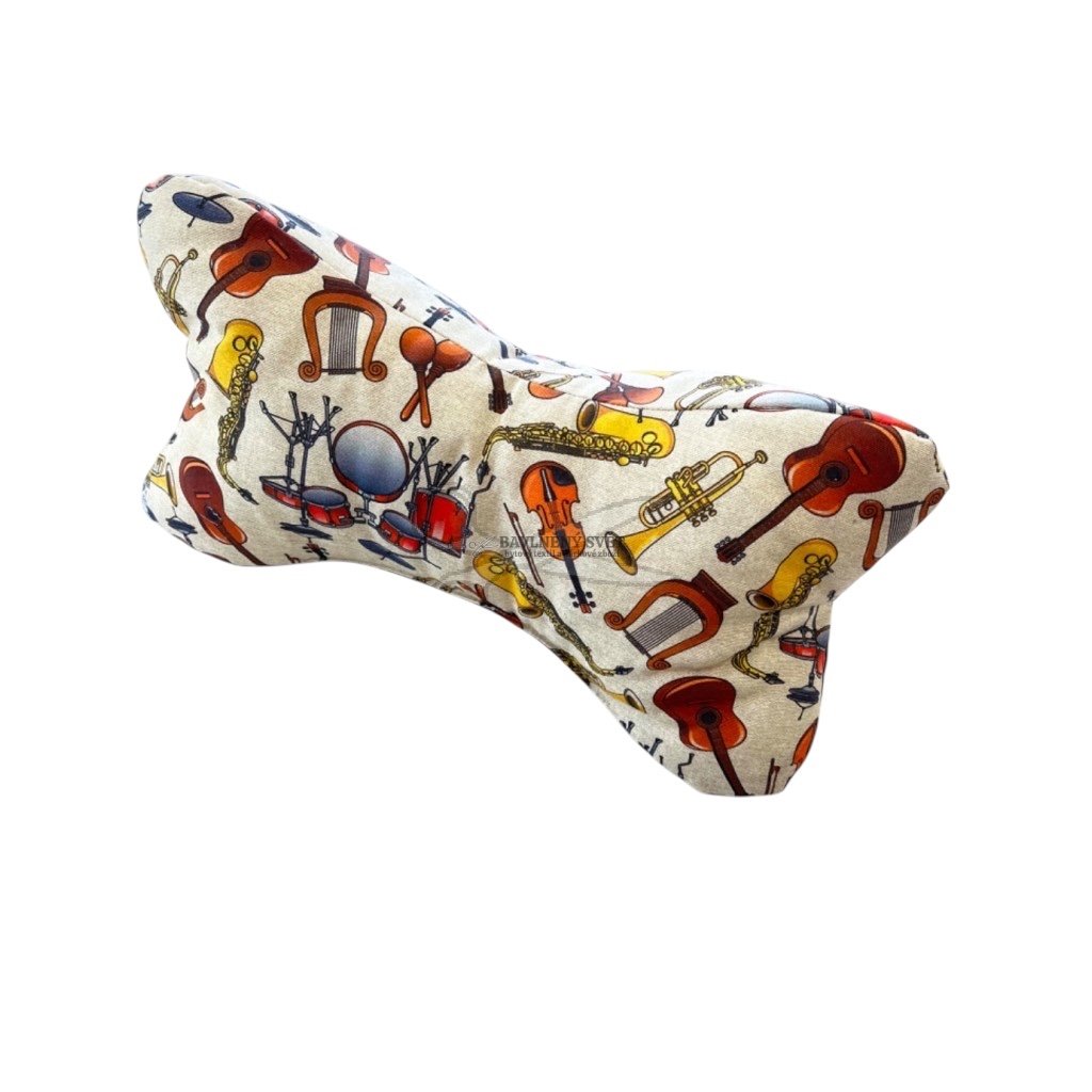 Nechte se unášet na vlnách pohodlí s naším jedinečným relaxačním polštářem ve tvaru kosti, který zdobí pestrý a hravý motiv různých hudebních nástrojů. Od kytar a houslí až po trubky a bicí – tento vzor vnese do vašeho interiéru veselou a kreativní atmosféru. Zapomeňte na nepohodlné podkládání hlavy klasickými polštáři. Tento ergonomický polštářek se stane vaším spolehlivým parťákem pro nerušený odpočinek.