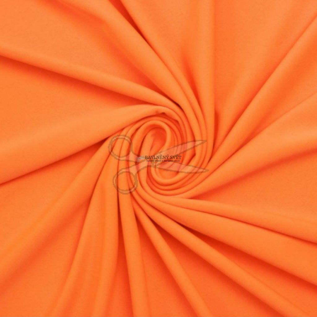 Úplet v neonově oranžové barvě je kvalitní pletená textilie s jemnou strukturou, která je pružná, prodyšná a příjemná na dotek. Díky elasticitě se látka dobře přizpůsobí pohybu těla a zajišťuje pohodlí při každodenním nošení i při sportu.