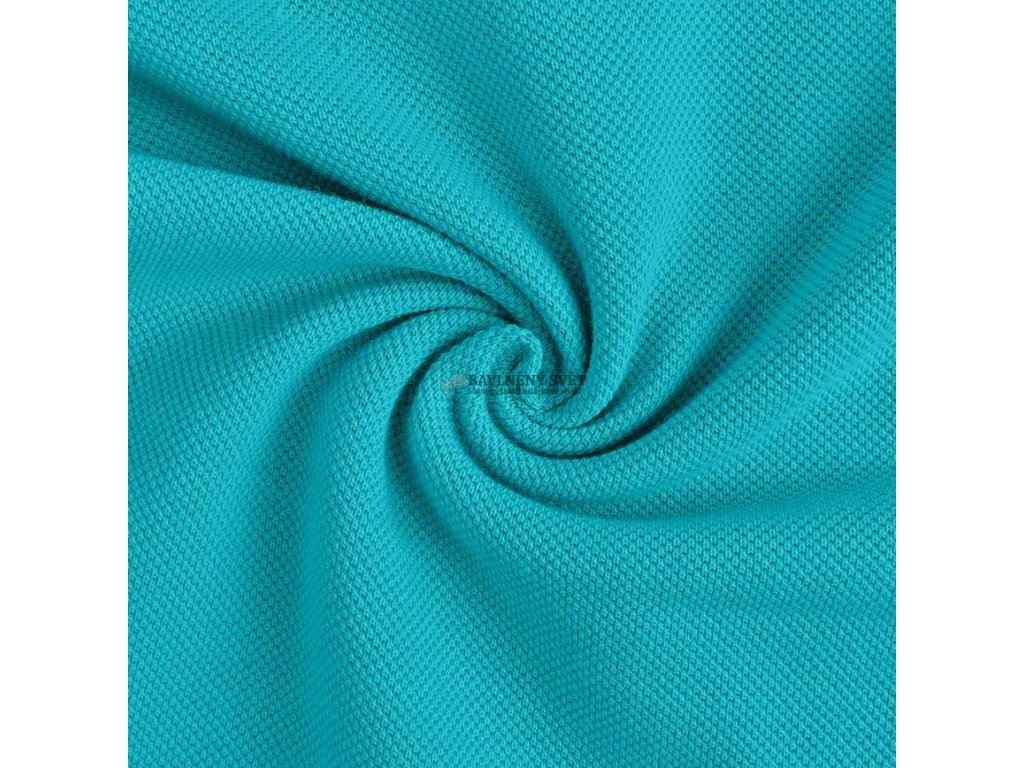 Piqué úplet v tyrkysové barvě je kvalitní pletená textilie s typickou reliéfní vazbou, která zajišťuje dobrou prodyšnost, odolnost a komfort při nošení. Nejčastěji se využívá na výrobu polokošil, triček, šatů, sukní, dětského oblečení a sportovní módy.