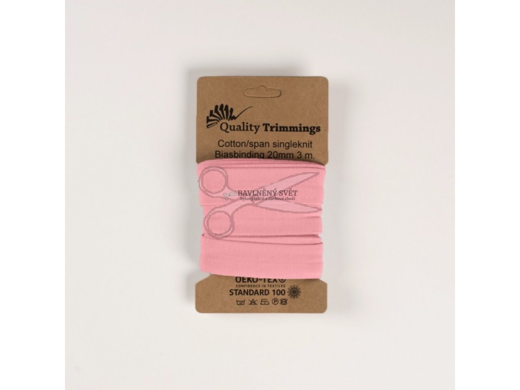 ÚPLETOVÝ lemovací šikmý PROUŽEK zažehlený 20 mm RŮŽOVÝ světlý
