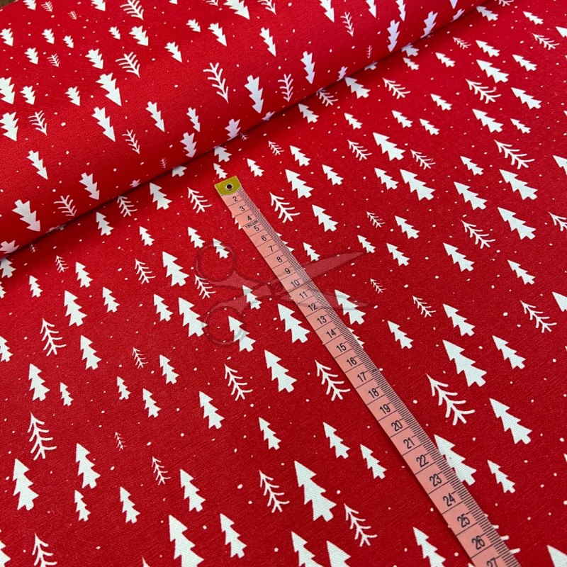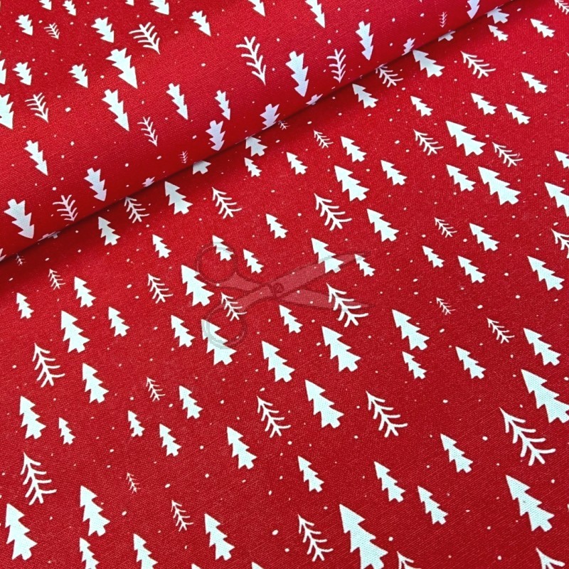 metráž - plátno VÁNOČNÍ - STROMEČKY červené š.150cm
