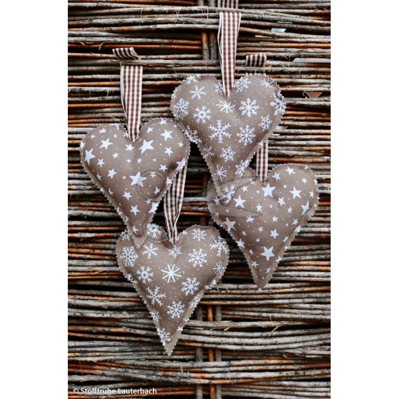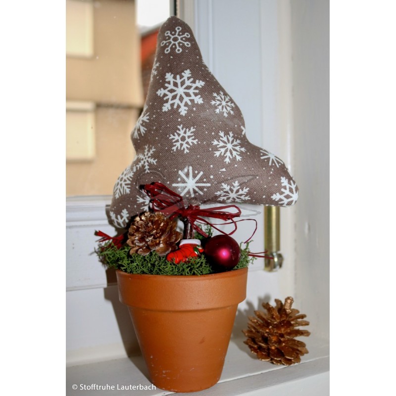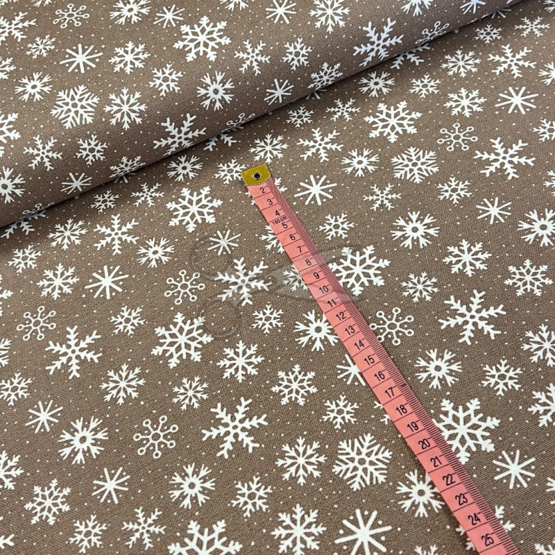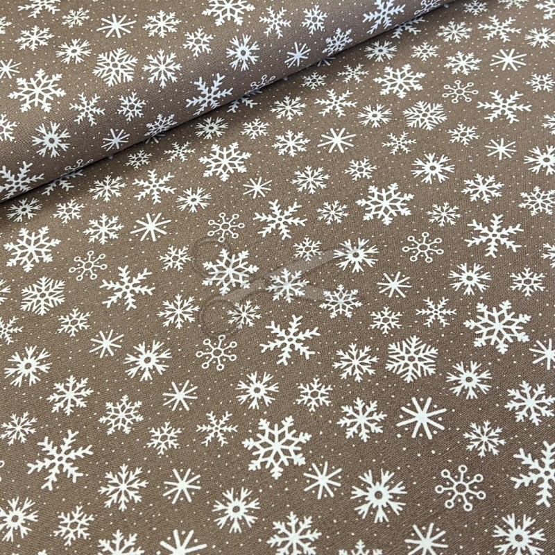 metráž - plátno VÁNOČNÍ - VLOČKY hnědé š.150cm