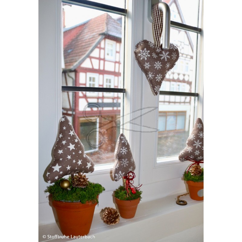 metráž - plátno VÁNOČNÍ - STROMEČKY hnědé š.150cm