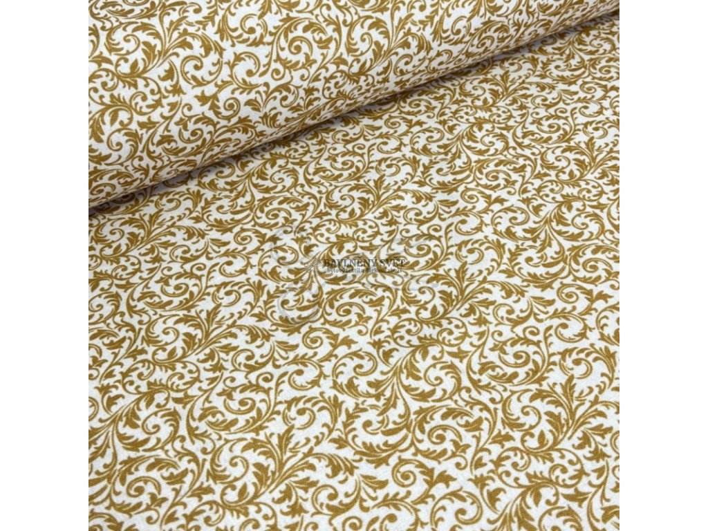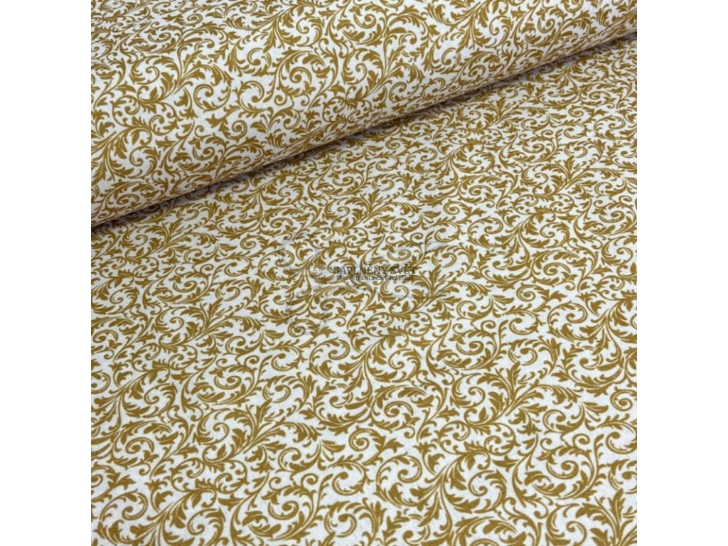 Vánoční dekorační látka loneta ORNAMENTY zlaté šíře 140 cm