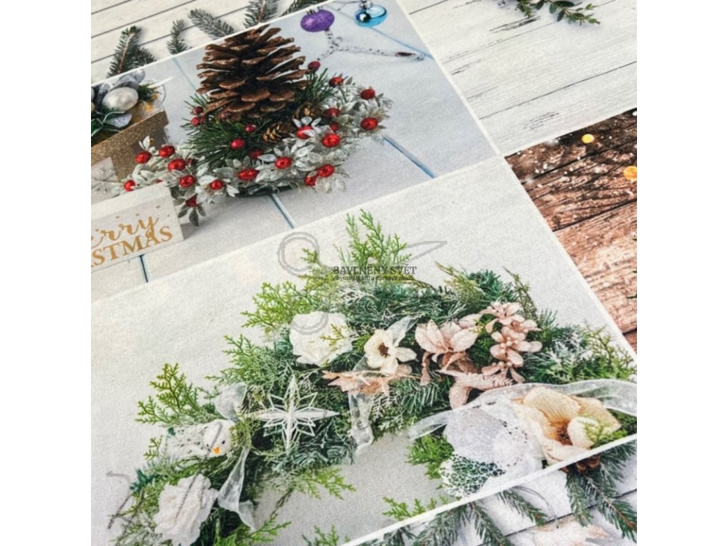 Hledáte způsob, jak letos vyšperkovat štědrovečerní tabuli bez zbytečně složitého vymýšlení? Naše loneta se vzorem věnců je unikátní svým panelovým uspořádáním. Každý motiv tvoří samostatný celek, který stačí vystřihnout a obšít. Výsledkem je nádherné prostírání, které vypadá jako z luxusního butiku s bytovými doplňky. Motiv jehličí, šišek a červených bobulí na světlém podkladu působí velmi vkusně a podtrhne krásu svátečního servisu.