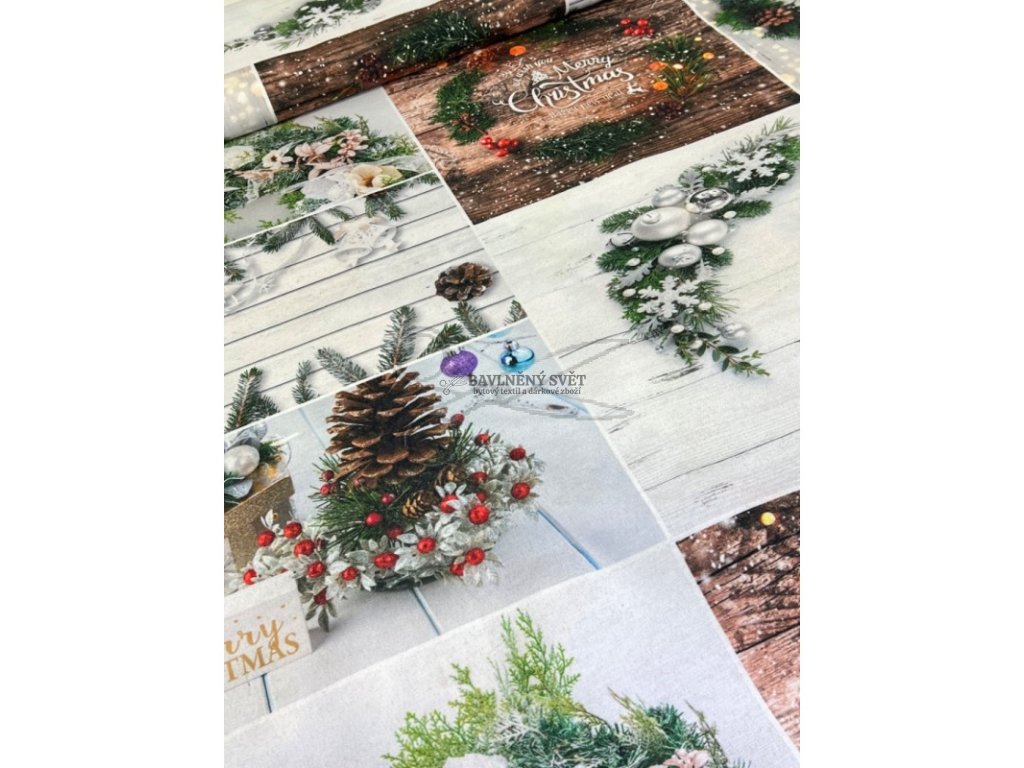 Vánoční dekorační látka loneta VĚNCE šíře 140 cm